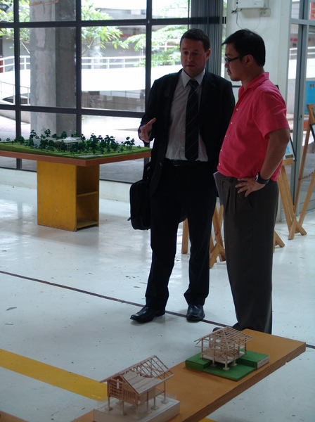 ผู้บริหารบริษัท บริติช เคานซิล โดยคุณ Pred Evans Director Education เข้าหารือและแลกเปลี่ยนข้อคิดเห็นเกี่ยวกับโครงการความร่วมมือไทย-อังกฤษด้านการศึกษา และข้อมูลที่ค้นหาได้ ด้านโอกาสทางการศึกษา และฝึกอบรมในประเทศอังกฤษ และร่วมหารือในการวางแนวทางกิจกรรมและโครงการความร่วมมือที่มีความเป็นไปได้เพื่อเป็นประโยชน์ของนักศึกษา โดยเสนอแนะนำโครงการต่างๆของ British Council อาทิเช่น Education UK Transnational Education in Thailand, International Mobility of UK Students 2009 2010 Guidelines, PMI2 Connect : Collaborative Programme Delivery Awards พร้อมกันนี้ได้เยี่ยมชมคณะสถาปัตยกรรมศาสตร์และนิทรรศการที่จัดแสดง โดยมี อ.ระวิวรรณ โอฬารรัตน์มณี หัวหน้าสำนักวิชาสถาปัตยกรรม และ อ.คมสัน ธีรภาพวงศ์ ผู้ช่วยคณบดีฝ่ายวิเทศสัมพันธ์ ให้การต้อนรับ