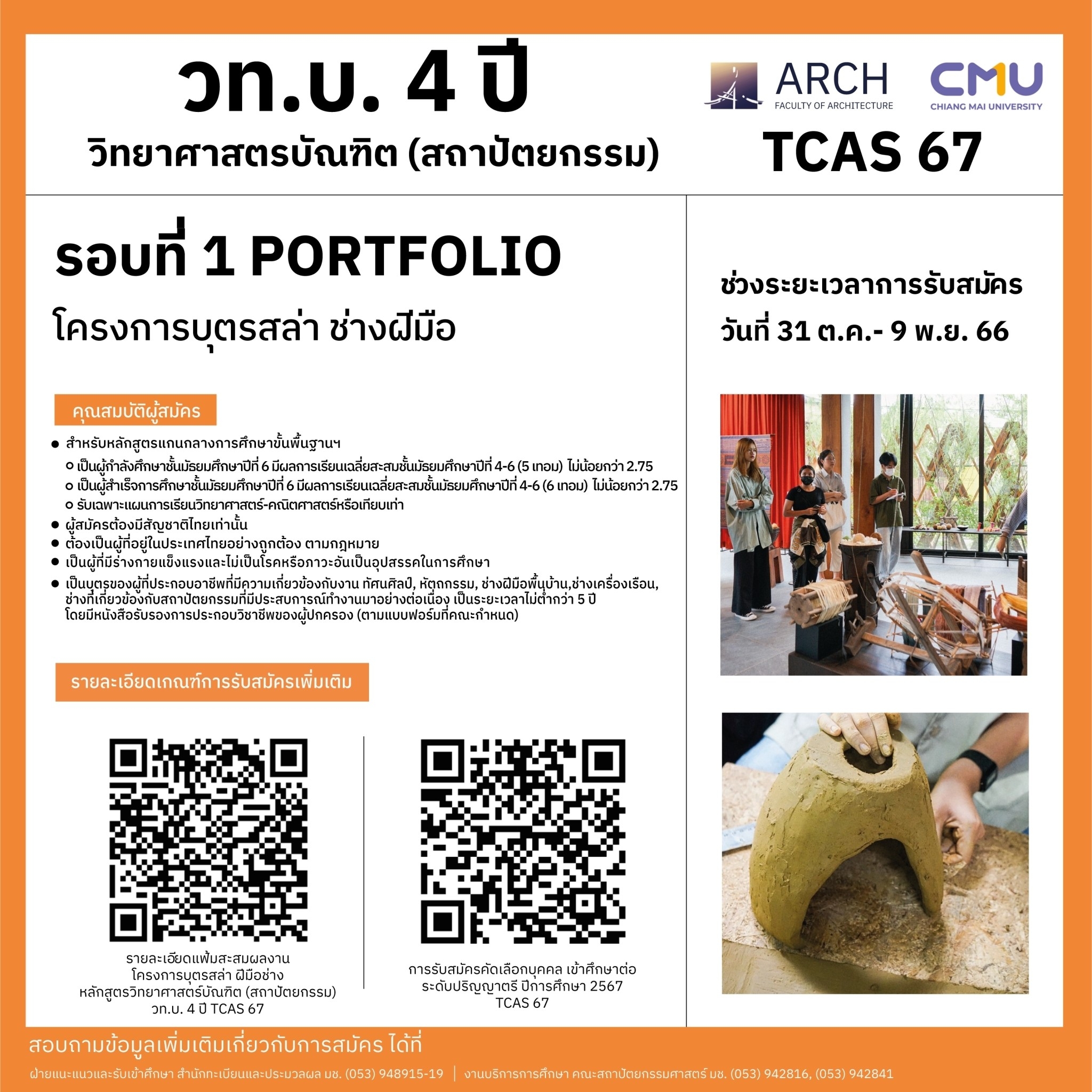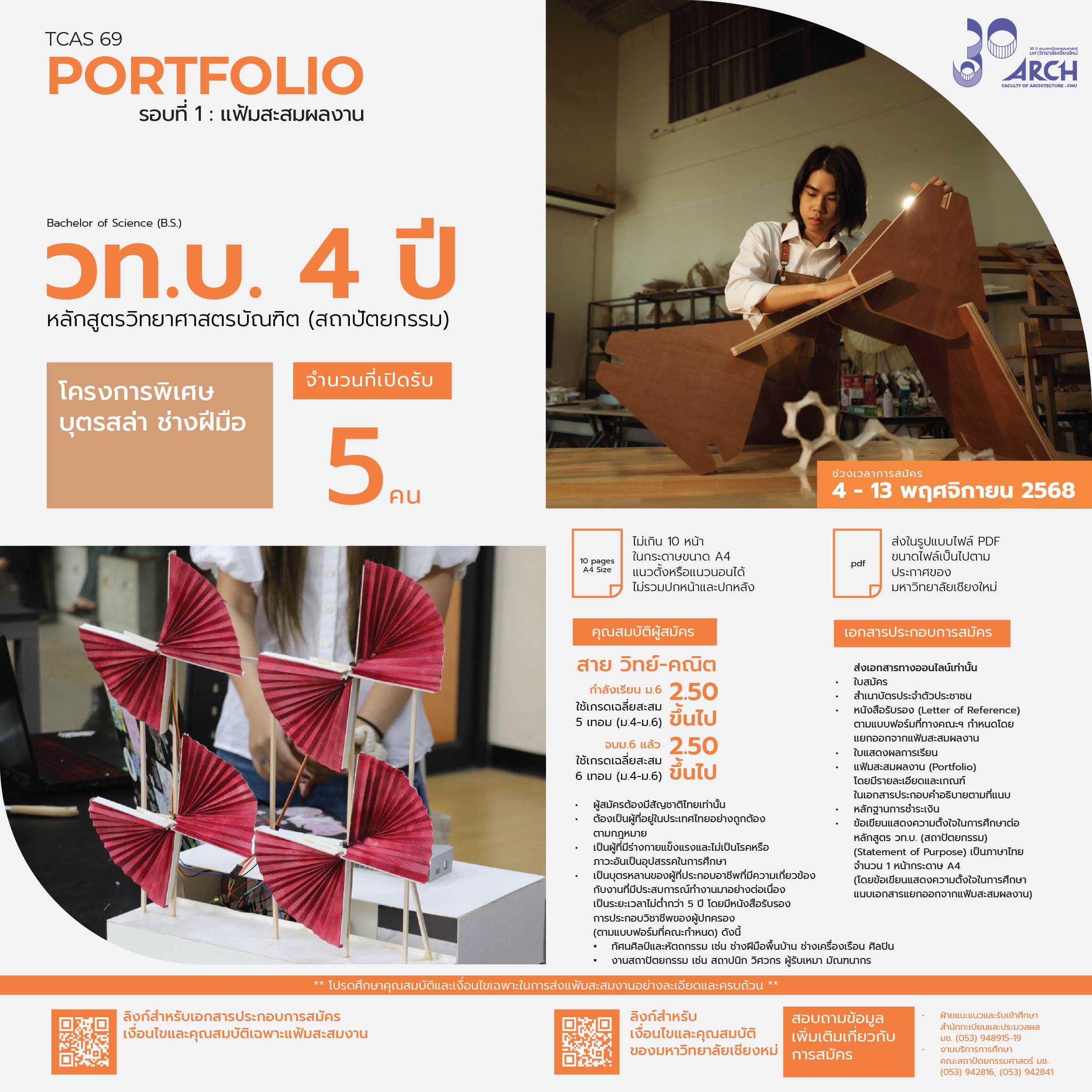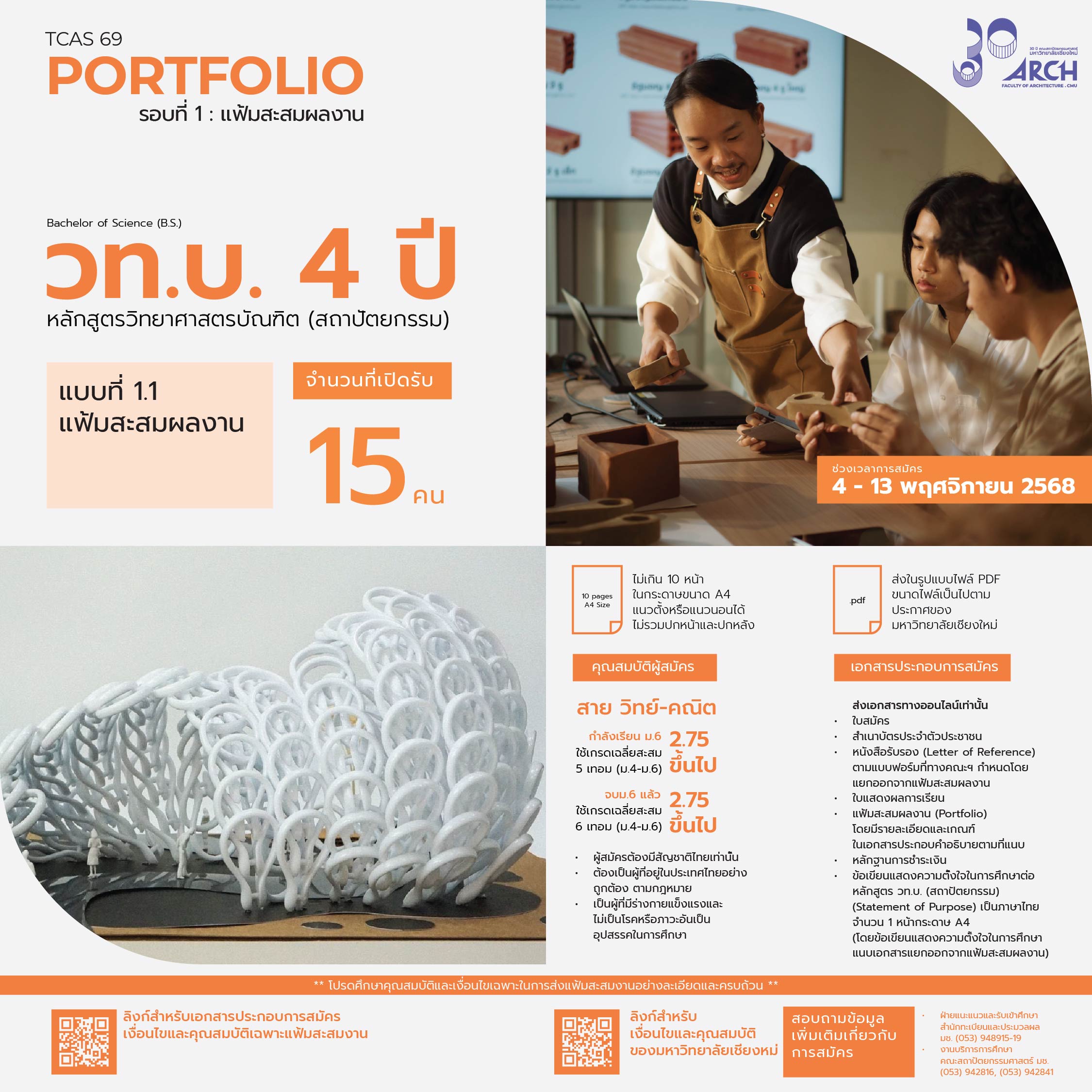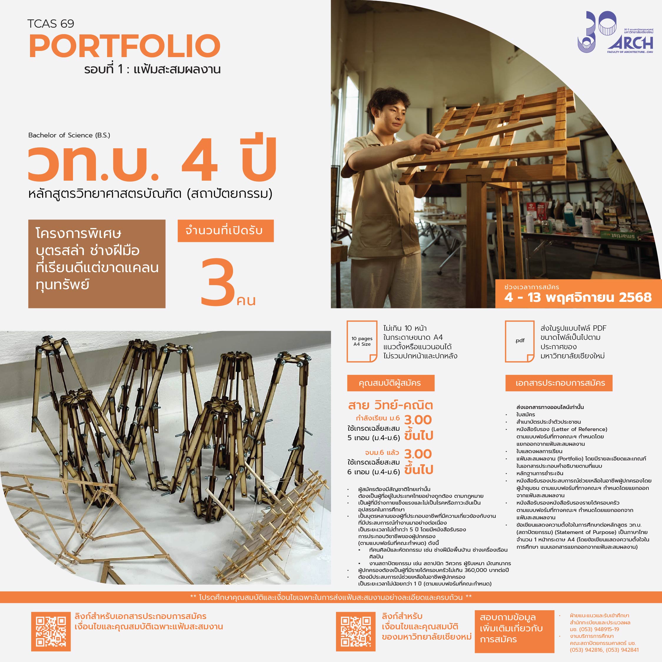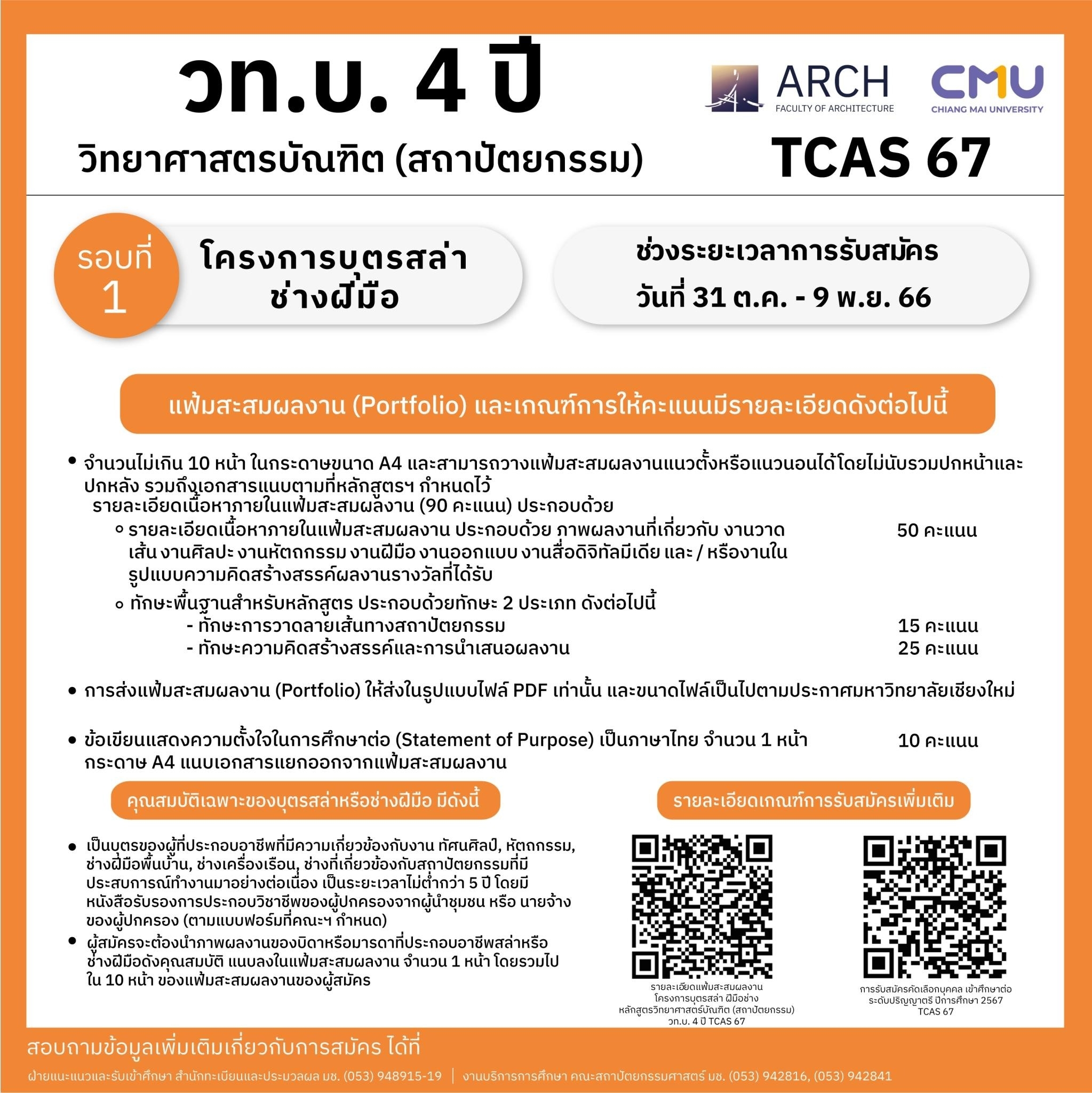| 00411702108011 | วท.บ 4ปี สถาปัตยกรรม (โครงการบุตรสล่า/ช่างฝีมือ ) |