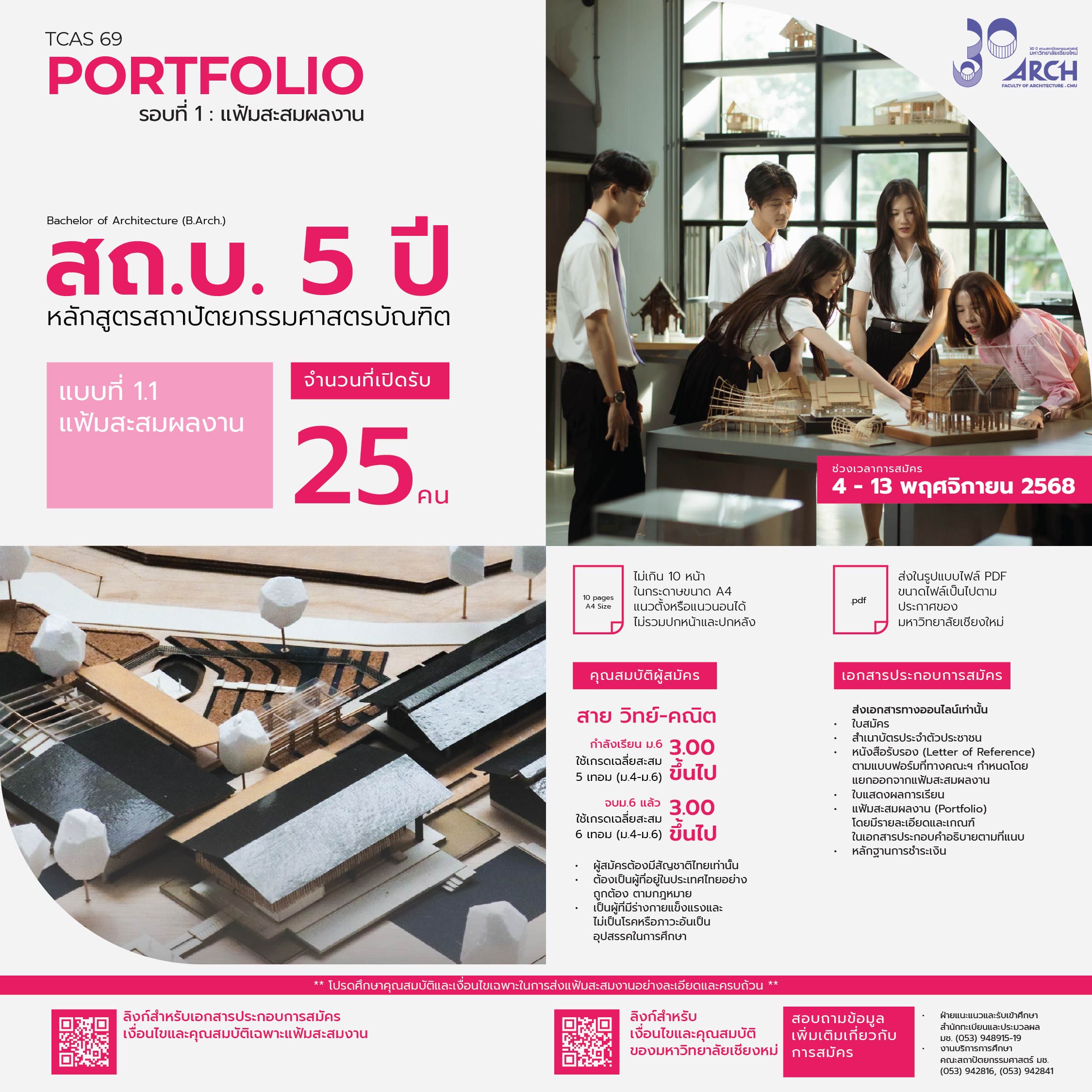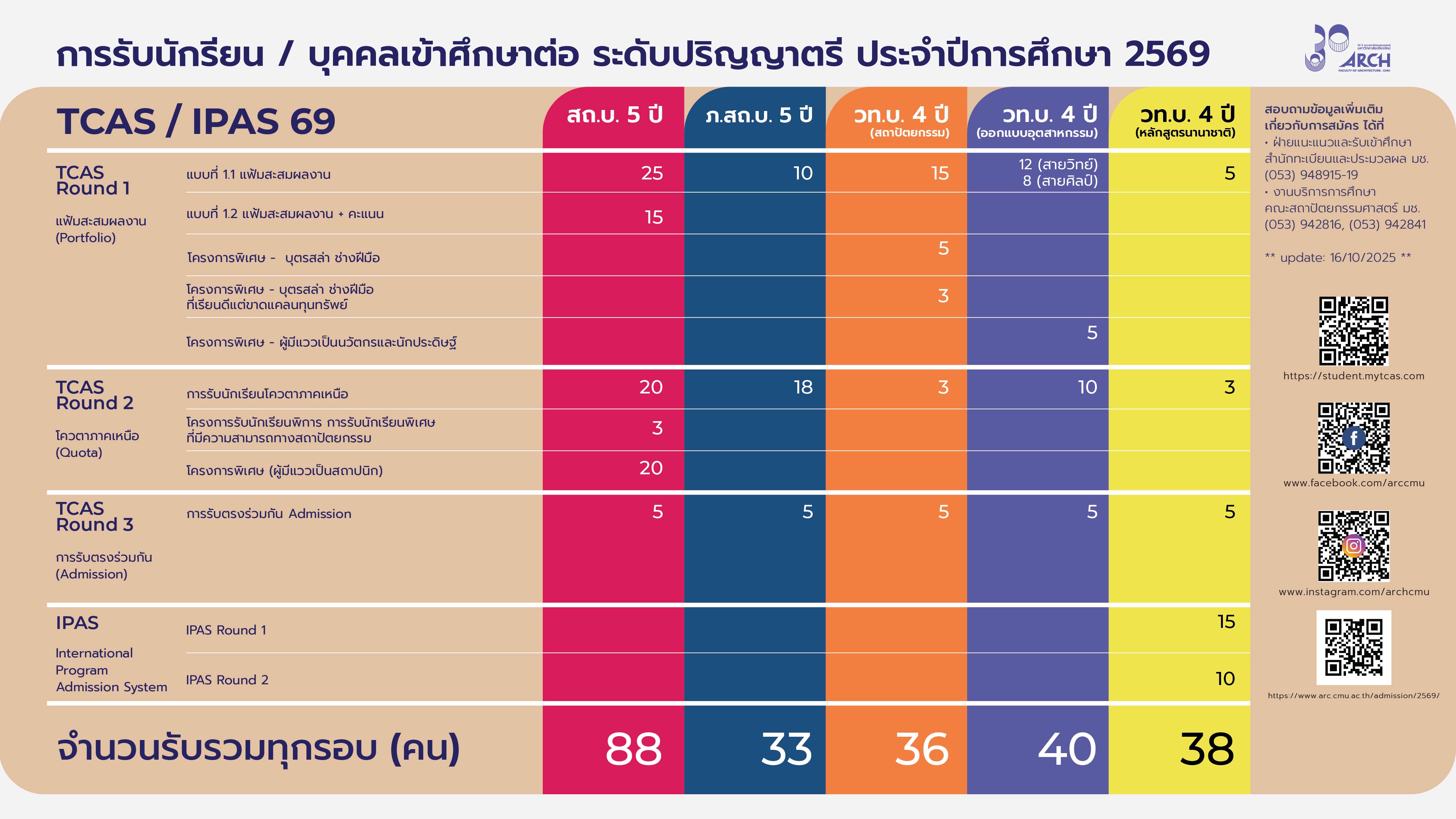 | 00441701401010 | สถ.บ 5ปี สถาปัตยกรรมศาสตรบัณฑิต | 30 |
