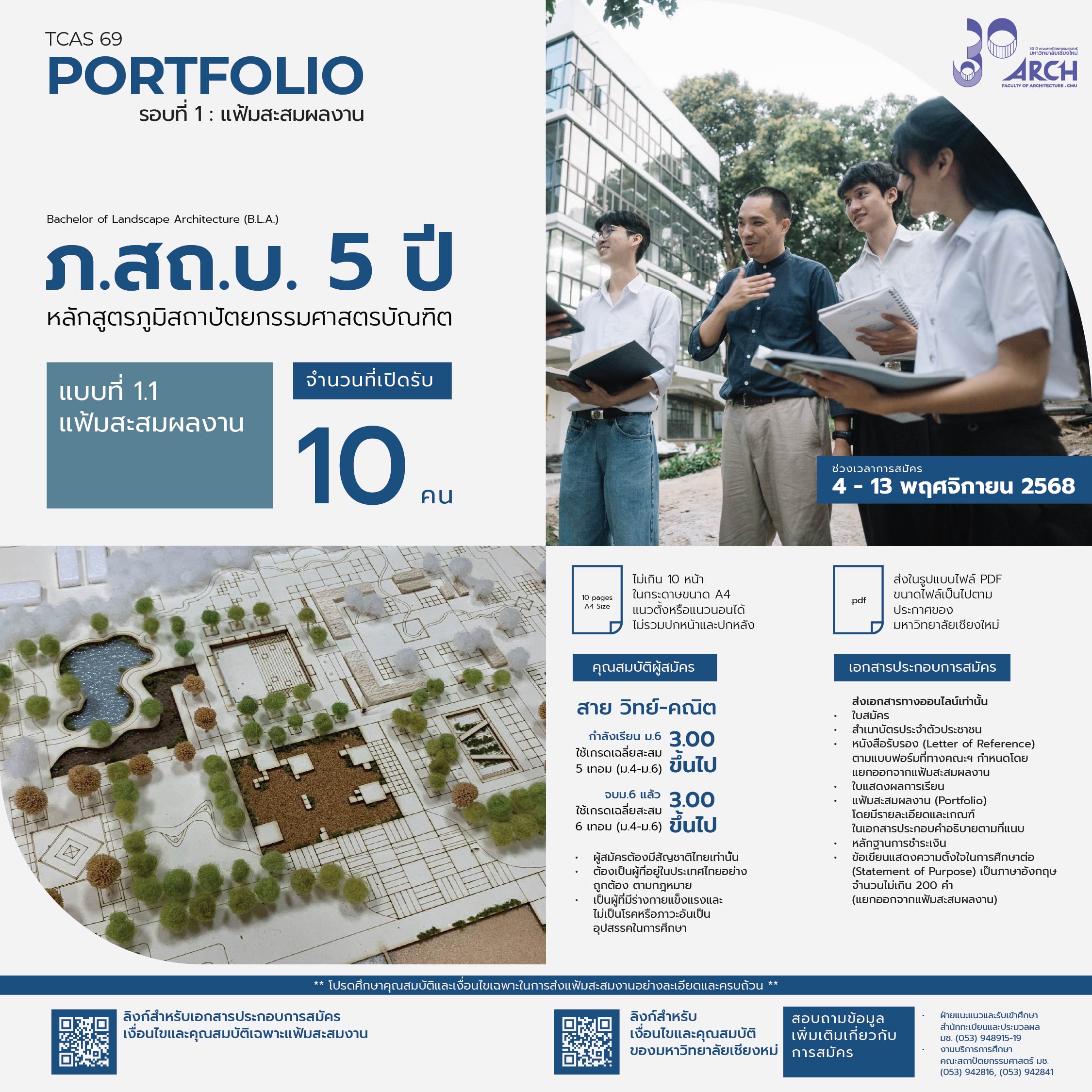 | 00431703301013 | ภ.สถ.บ. 5ปี ภูมิสถาปัตยกรรมศาสตรบัณฑิต | 10 |