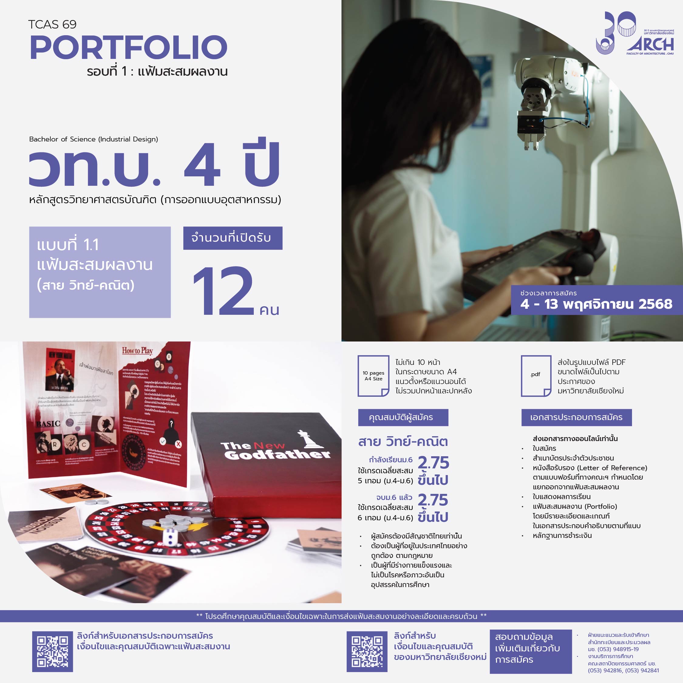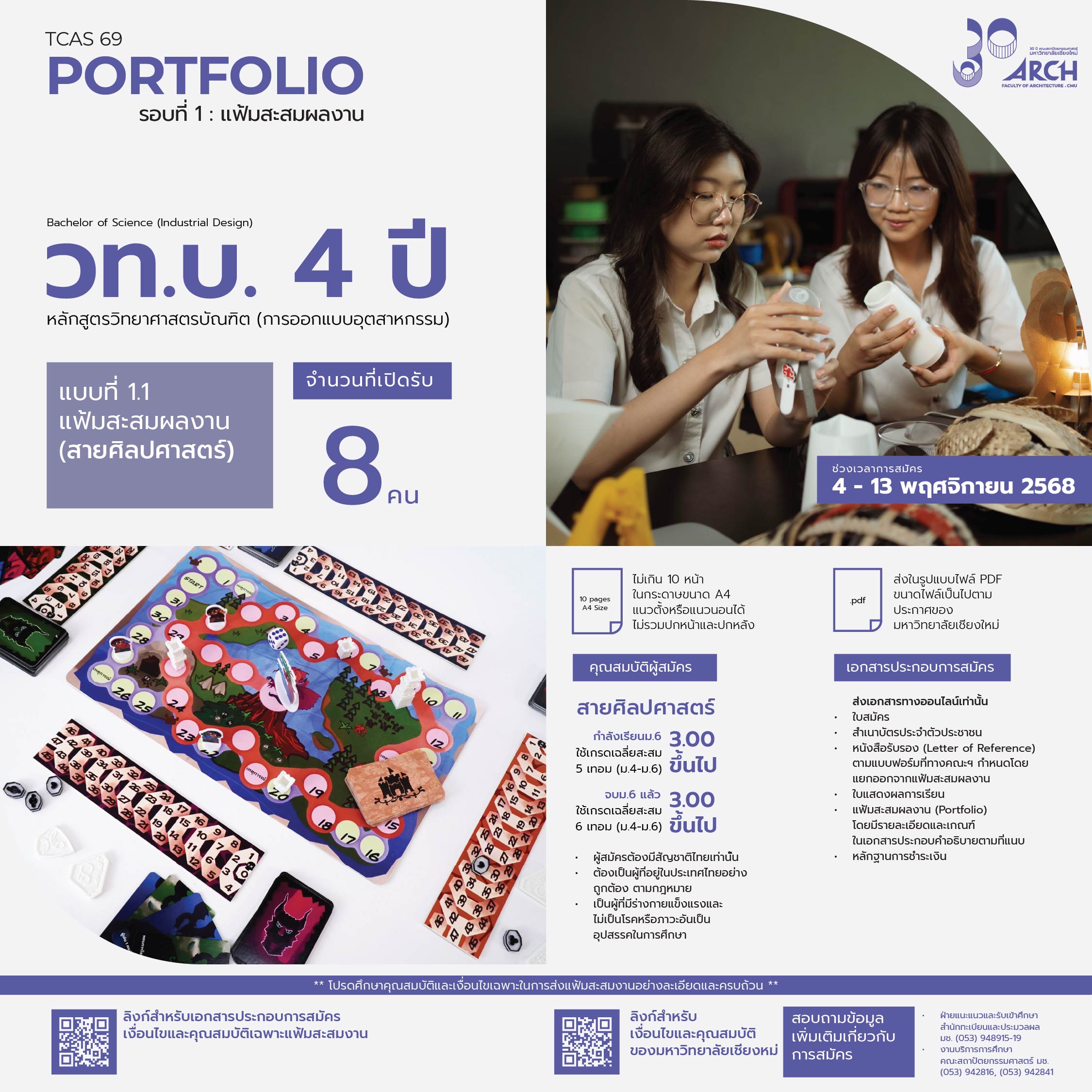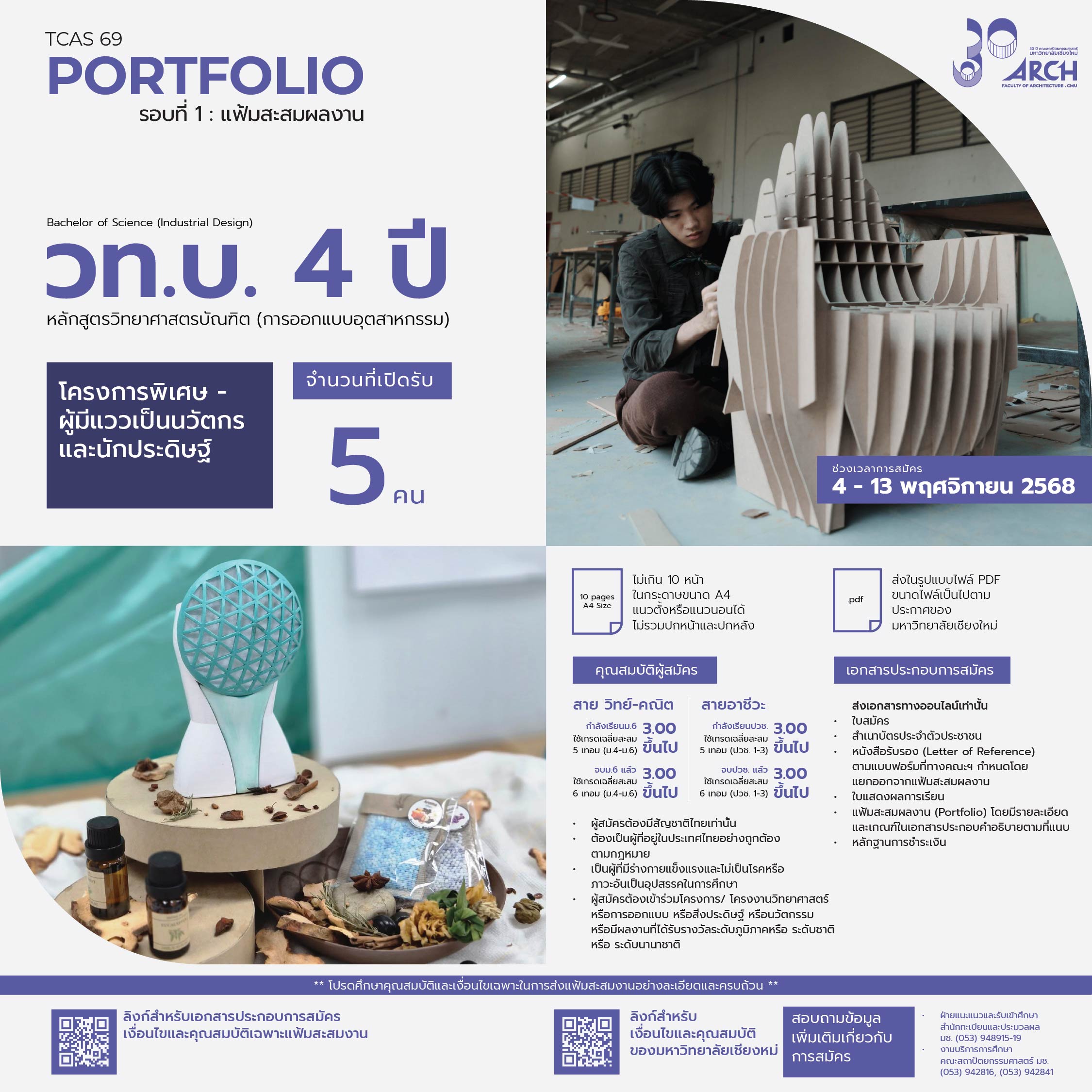 | 00411704108011 | วท.บ 4ปี ออกแบบอุตสากรรม (มีแววเป็นนวัตกรและนักประดิษฐ์) |
