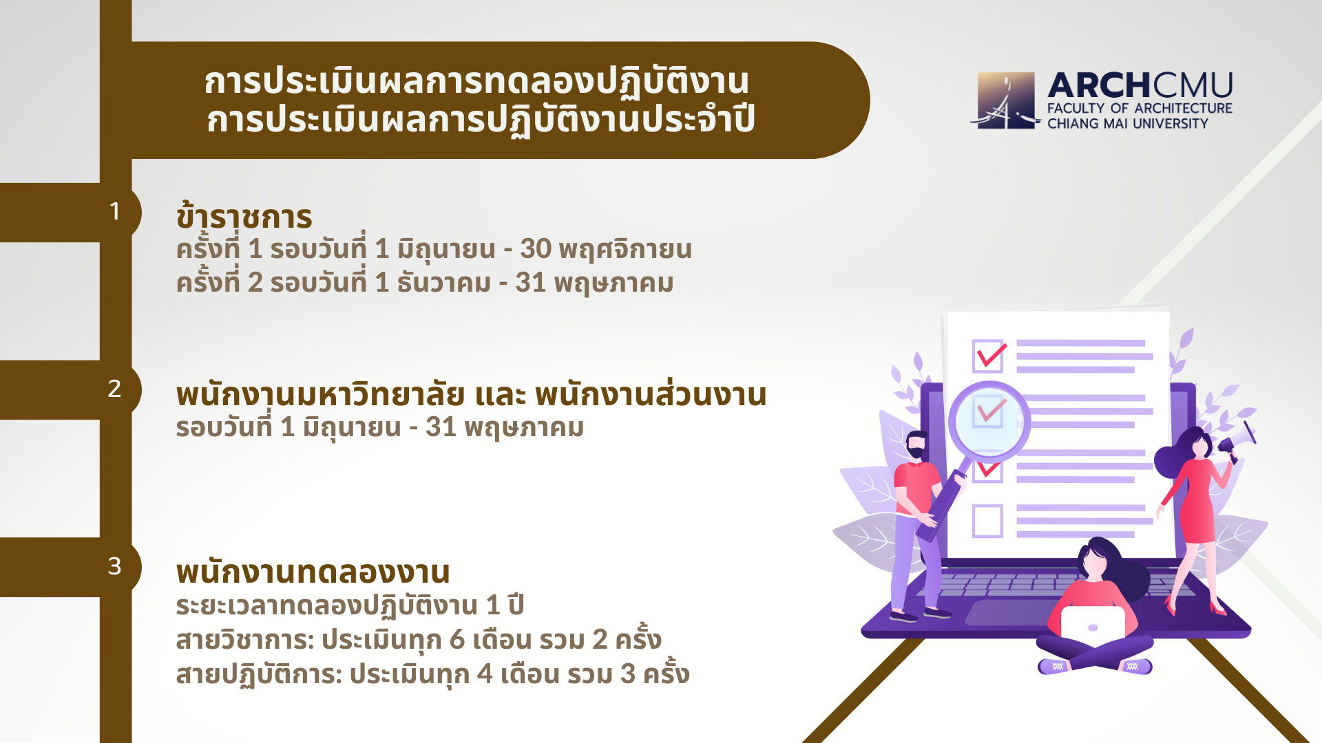 สายวิชาการ: ประเมินทุก 6 เดือน รวม 2 ครั้ง