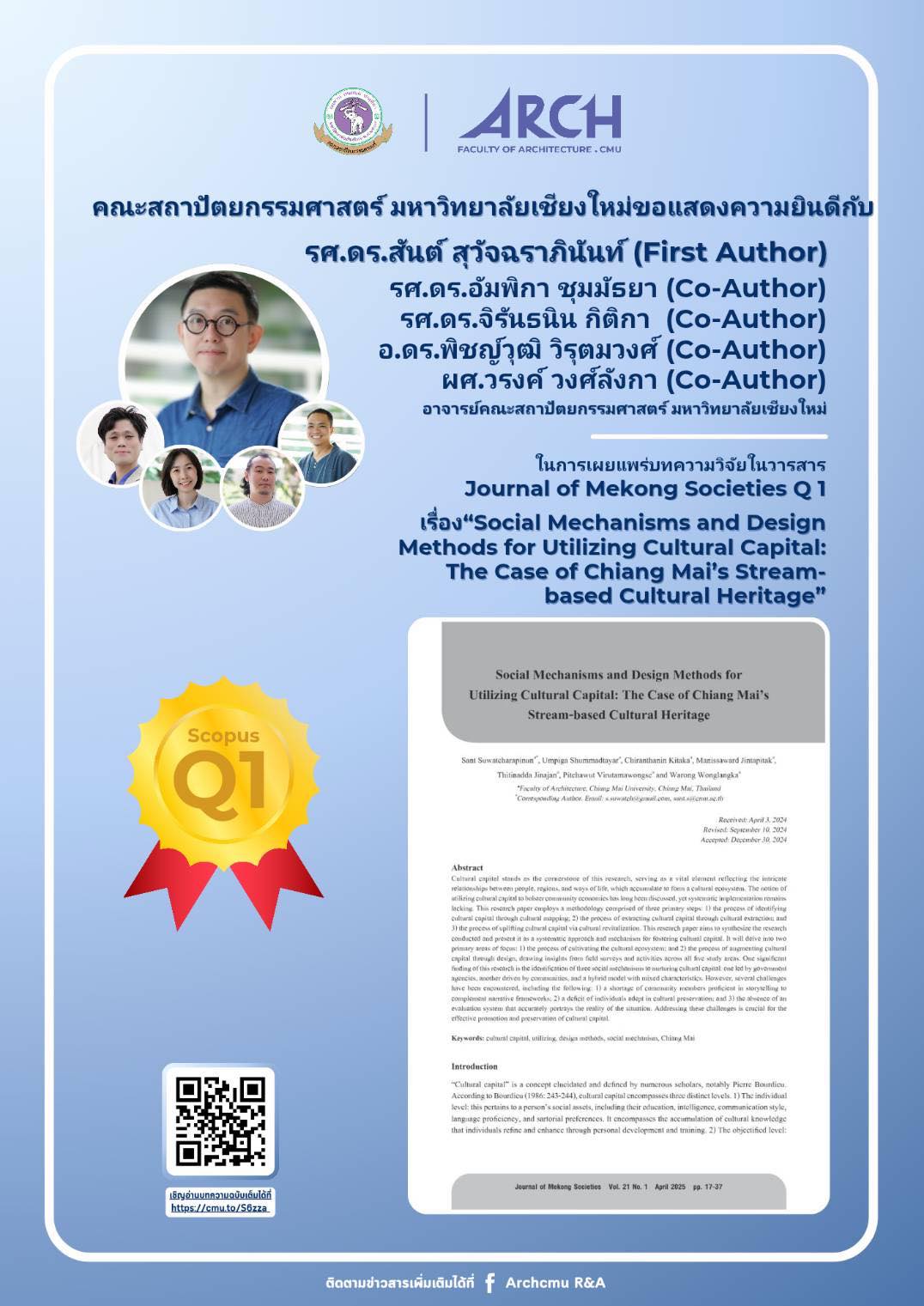 เรื่อง “Social Mechanisms and Design Methods for Utilizing Cultural Capital: The Case of Chiang Mai’s Stream-based Cultural Heritage”